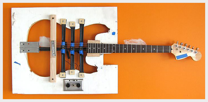 While it might be great as an art installation, I’m not quite sure about the practical qualities of this creative guitar!